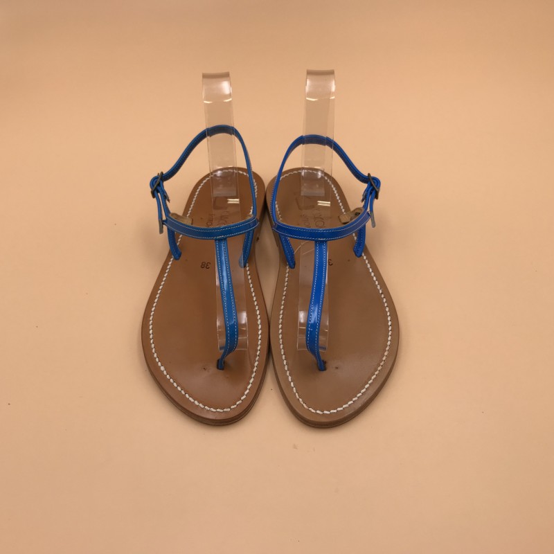 K.Jacques flat sandals, VALERIE Model, neon blue Leather. Size 38
