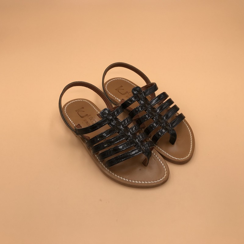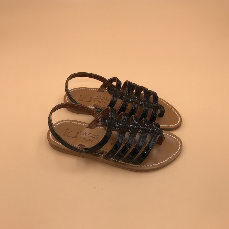 K.Jacques flat sandals, HOMERE Model, Black patent Leather size 35.