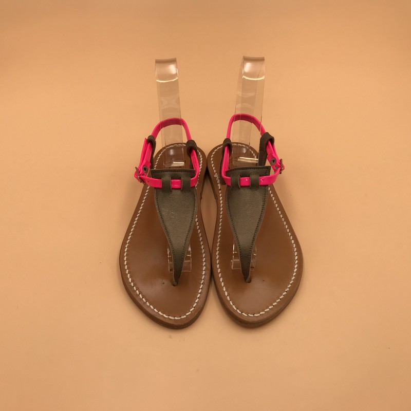 K.Jacques flat sandals, CORIOLAN Model,Suede Metallic Italiano Neon Patent Pink Leathers. Size 35