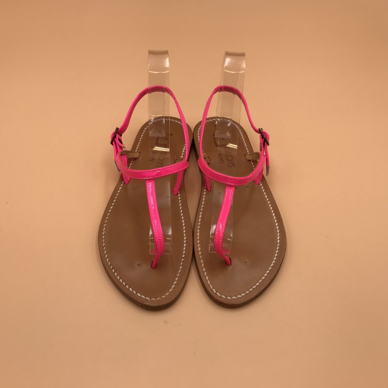 K.Jacques flat sandals VALERIE Model, Neon Pink Leather. Size 39.