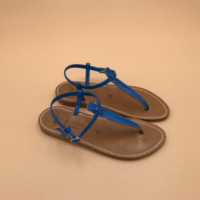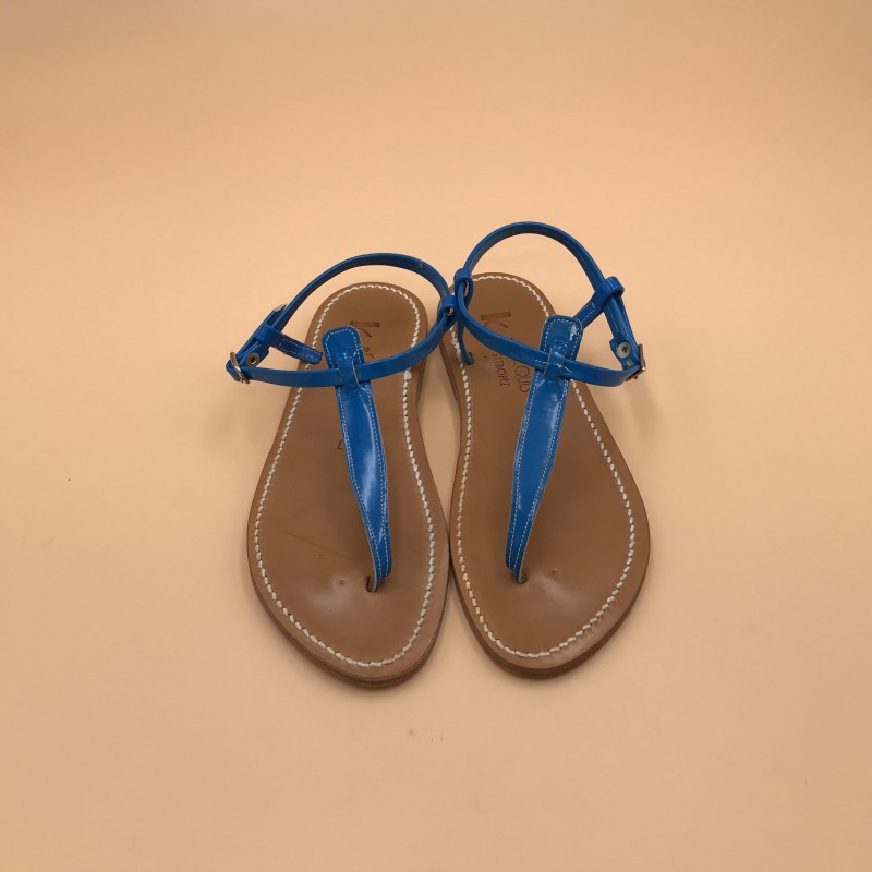 K.Jacques flat sandals, PICON Model, Neon Patent Blue Leather. Size 37