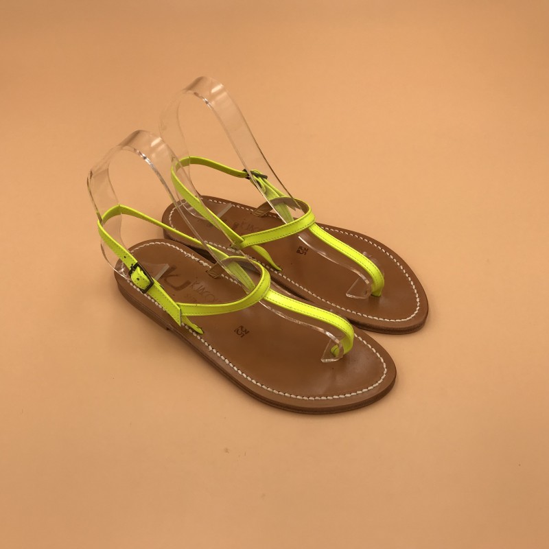 K.Jacques flat sandals, VALERIE Model, Neon Yellow Leather. Size 35.
