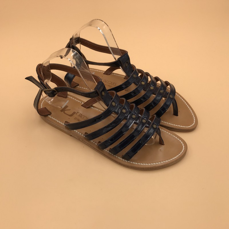 K.Jacques flat sandals, AGOPOS Model, Navy Patent Leather. Size 41