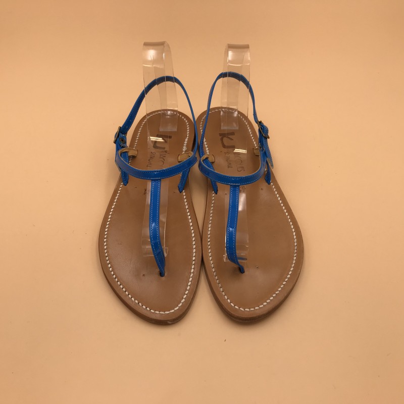 K.Jacques flat sandals, VALERIE Model, neon blue Leather. Size 41