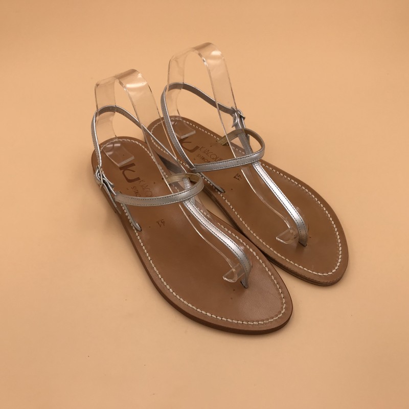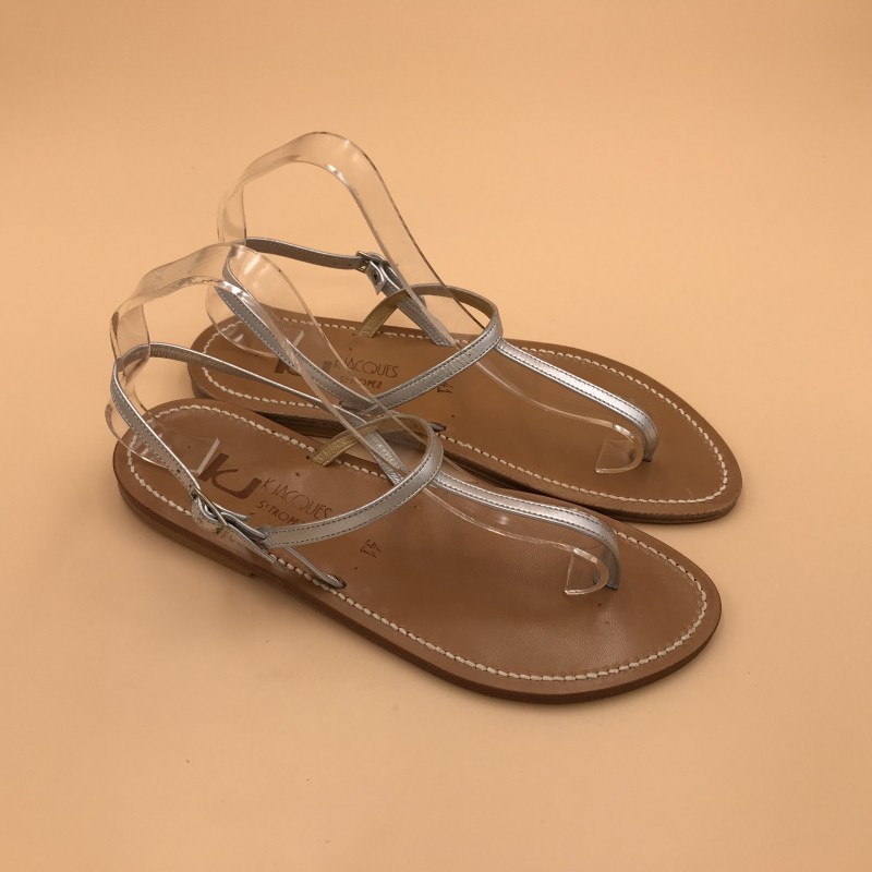 K.Jacques flat sandals, VALERIE Model, Metallic Silver Leather. Size 41