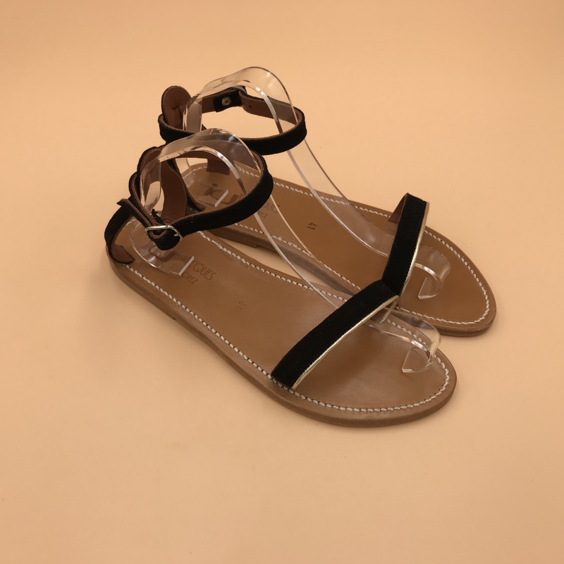 K.Jacques flat sandals, LAURA Model, NET Metyl Champan leather and Suede Black Leather. Size 41