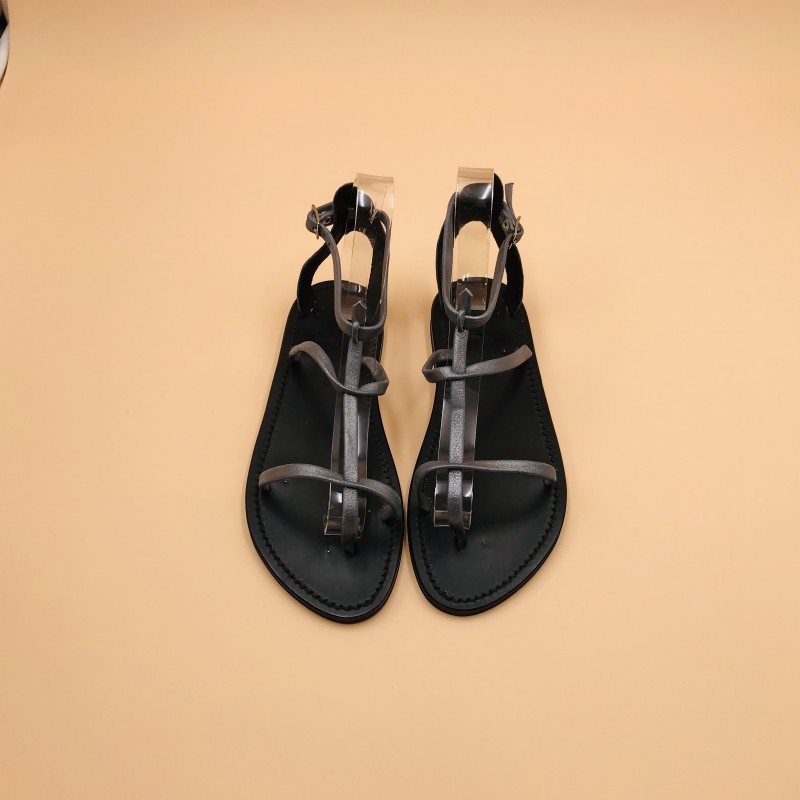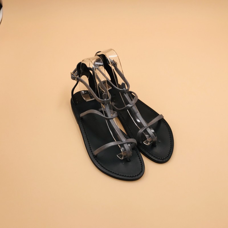 K.Jacques flat sandals, PANDA Model, Suede Metallic Acier Leather on black sole. Size 37