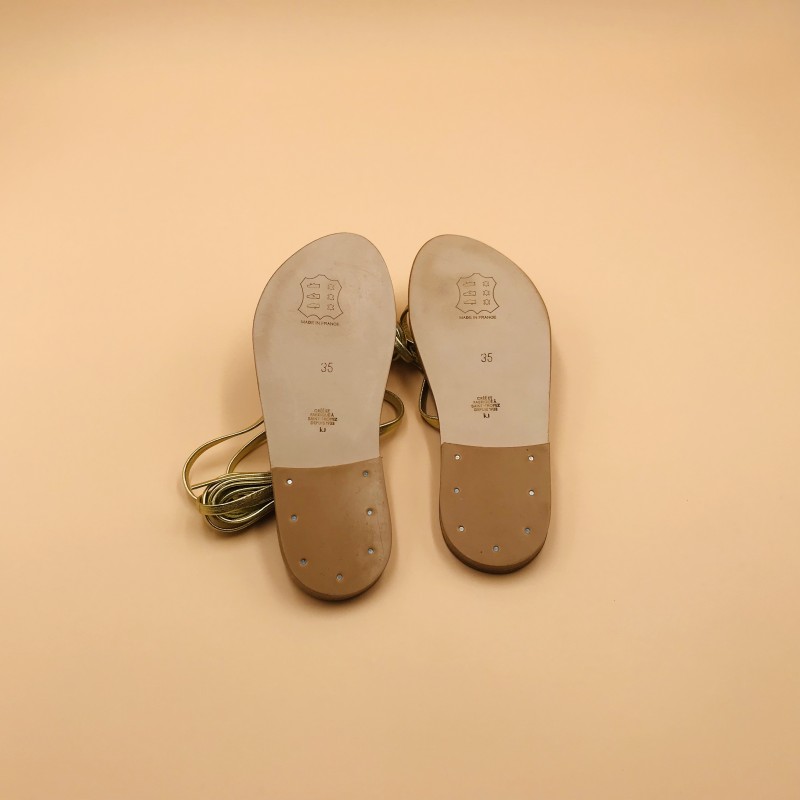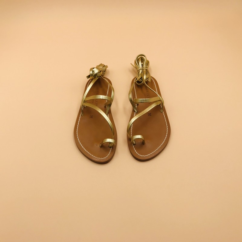 K.Jacques flat sandals, ELLADA Model, Metal Gold Leather. Size 35