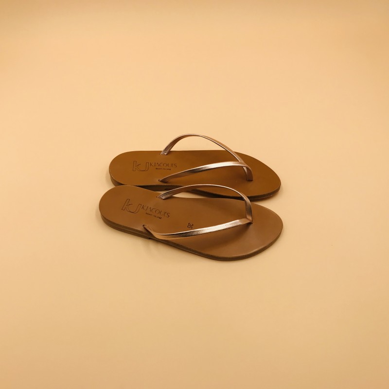 K.Jacques flat sandals, SPEZIA Model, Metallic Peach Leather. Size 35.