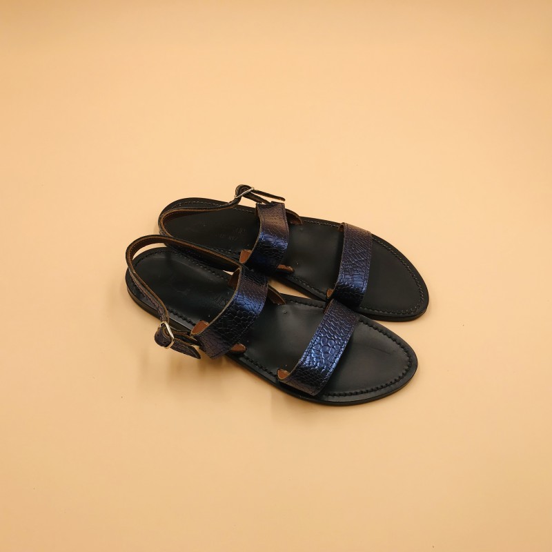 K.Jacques flat sandals, BARIGOULE Model Black Sole, Seoul Navy Blue Leather. Size 41