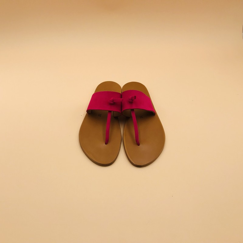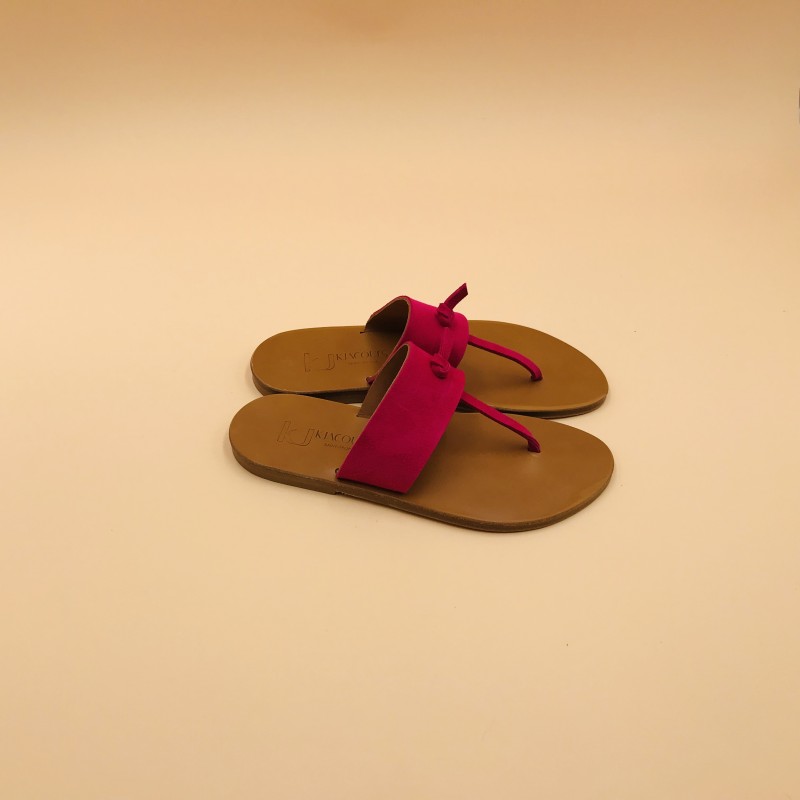 K.Jacques flat sandals, SHAMBALA Model, Suede Framboise Leather On epure sole natural. Size 38.