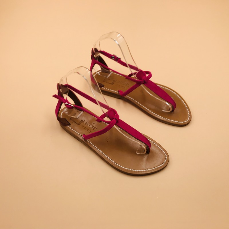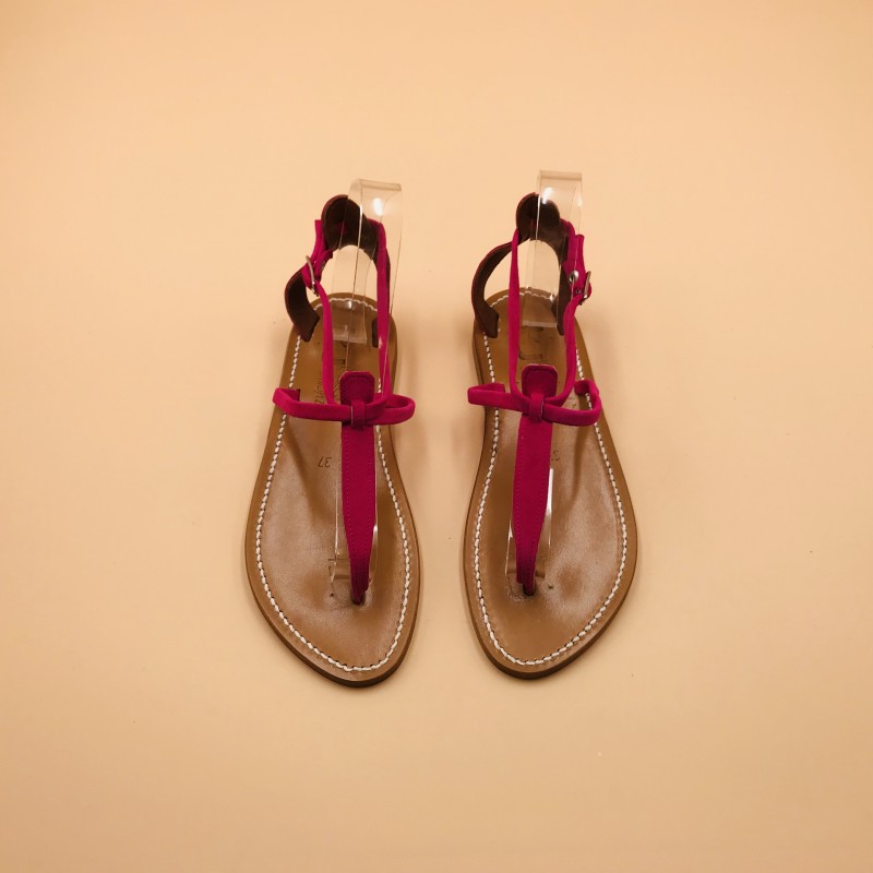 K.Jacques flat sandals, BUFFON Model, Suede Raspberry Leather. Size 37