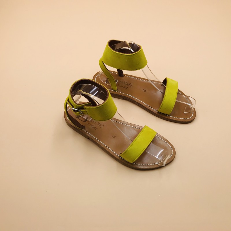 K.Jacques flat sandals, SARATOGA Model, Suede Amarillo Leather. Size 37.