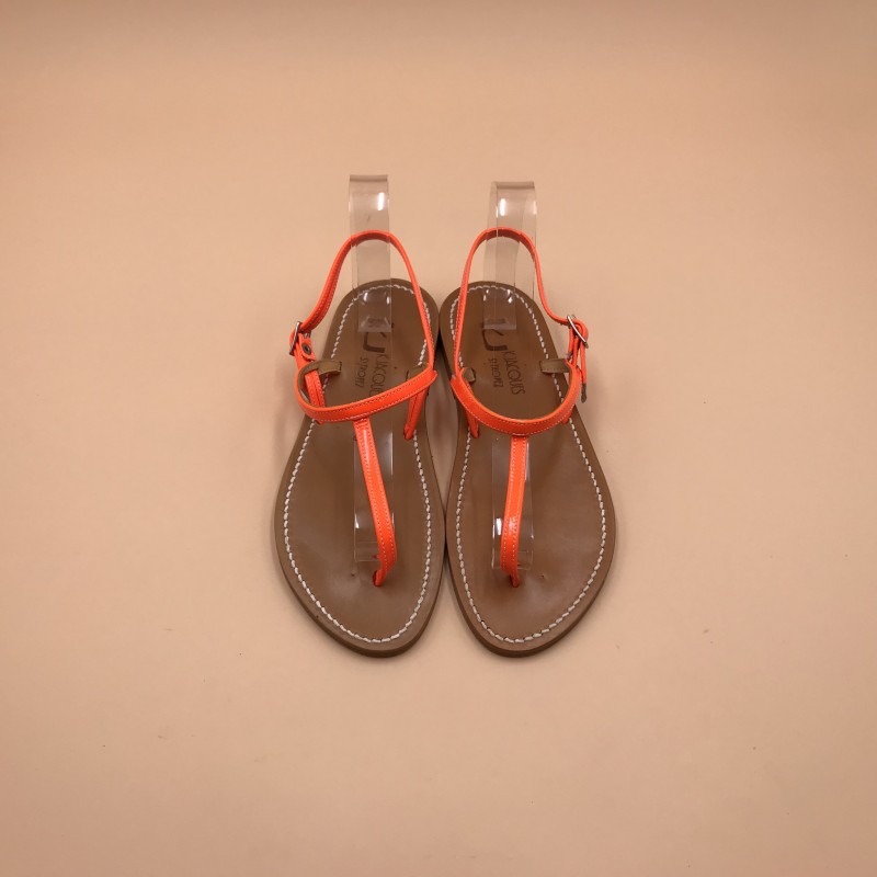 K.Jacques flat sandals VALERIE Model, Neon Orange Leather. Size 38.
