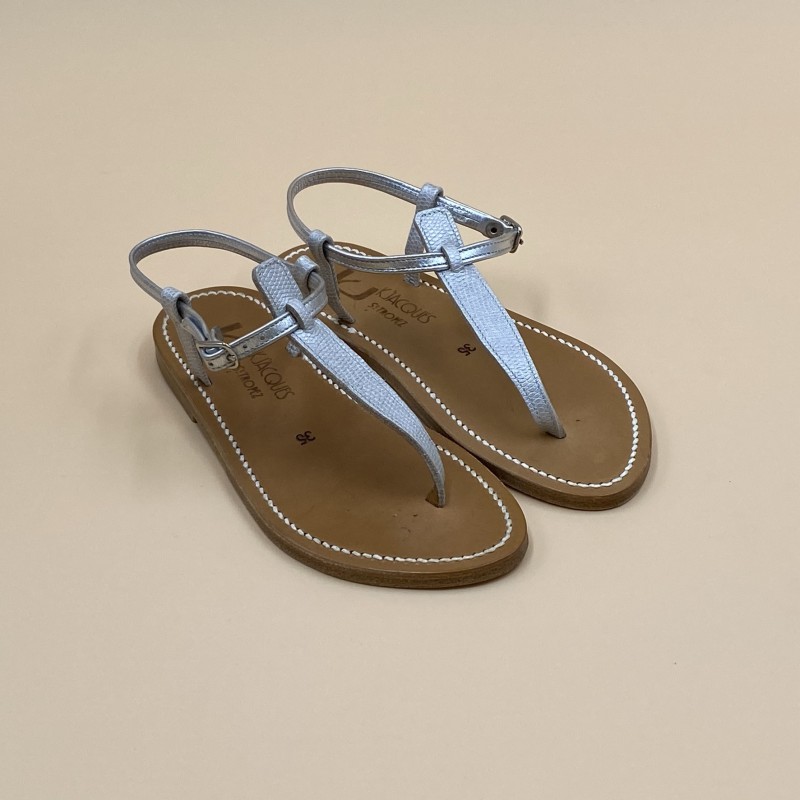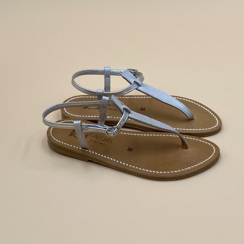 K.Jacques flat sandals, PICON Model, Keo Picazo / Metallic Silver Leather , Size 35