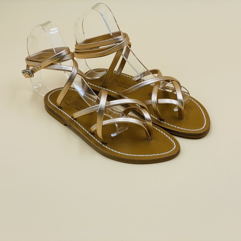 K.Jacques flat sandals, ZENOBIE Model, Metallic Peach Leather. Size 36.