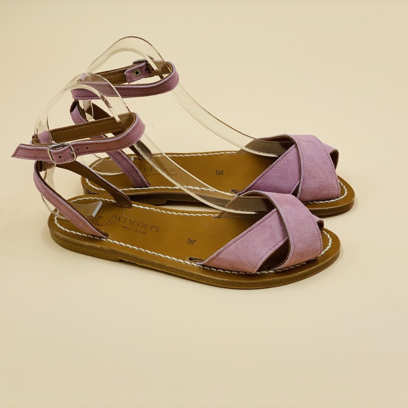 K.Jacques flat sandals, MARILOU Model, Suede Petalo Leather. Size 36