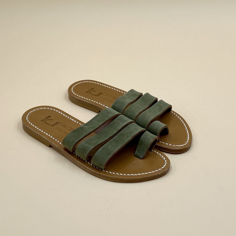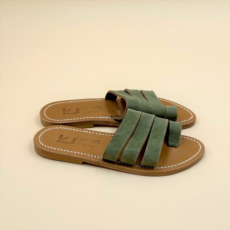 K.Jacques flat sandals, GANDALF Model, Suede Lichen Leather. Size 37.