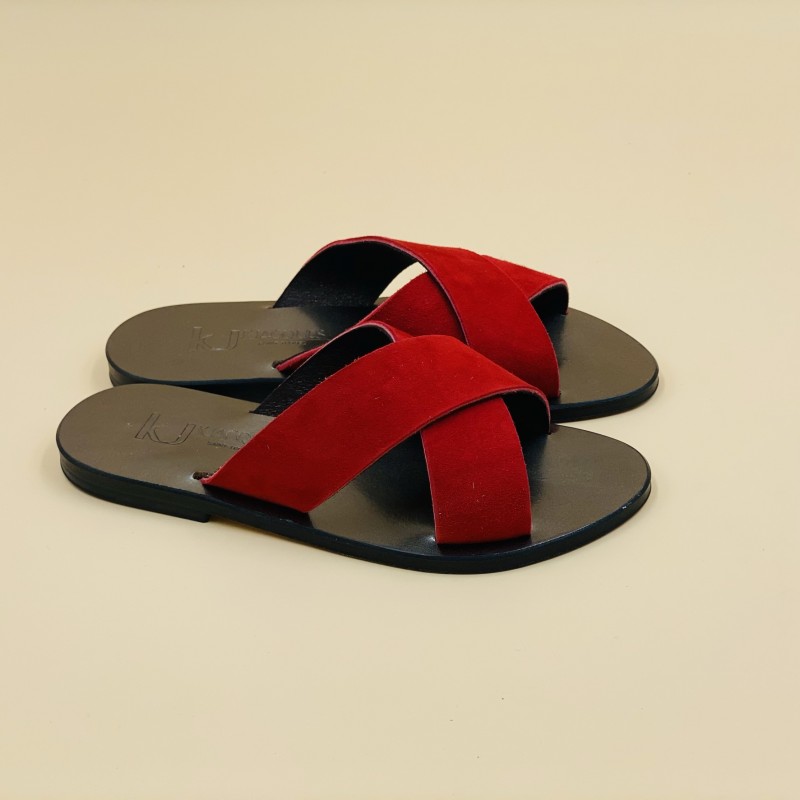 K.Jacques flat sandals, TOBAGO, EPURE SILVER SOLE, Suede Red leather size 37.