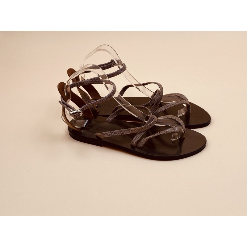 K.Jacques flat sandals, FUSAIN Model Epure Silver, Disco Black Leather. Size 38