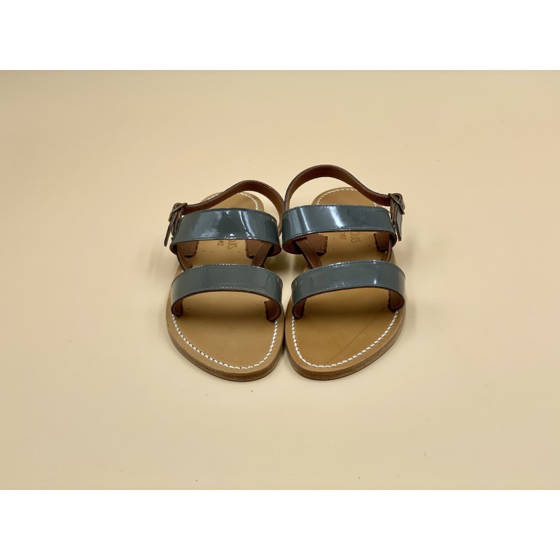 K.Jacques flat sandals, BARIGOULE Model, Patent Grey Leather. Size 38.