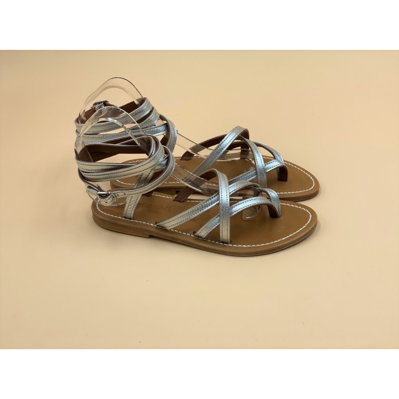 K.Jacques flat sandals, ZENOBIE Model, Metallic Silver Leather. Size 38