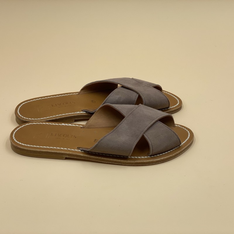 K.Jacques flat sandals, PICON Model, Suede Paladio Leather. Size 40.