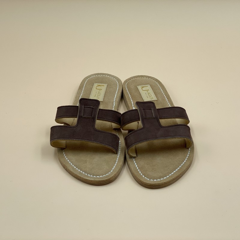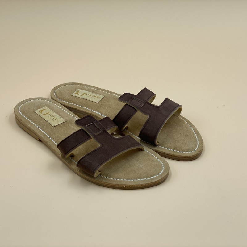 K.Jacques flat sandals, GIGLIO Model, Suede Moka Leather. Size 40