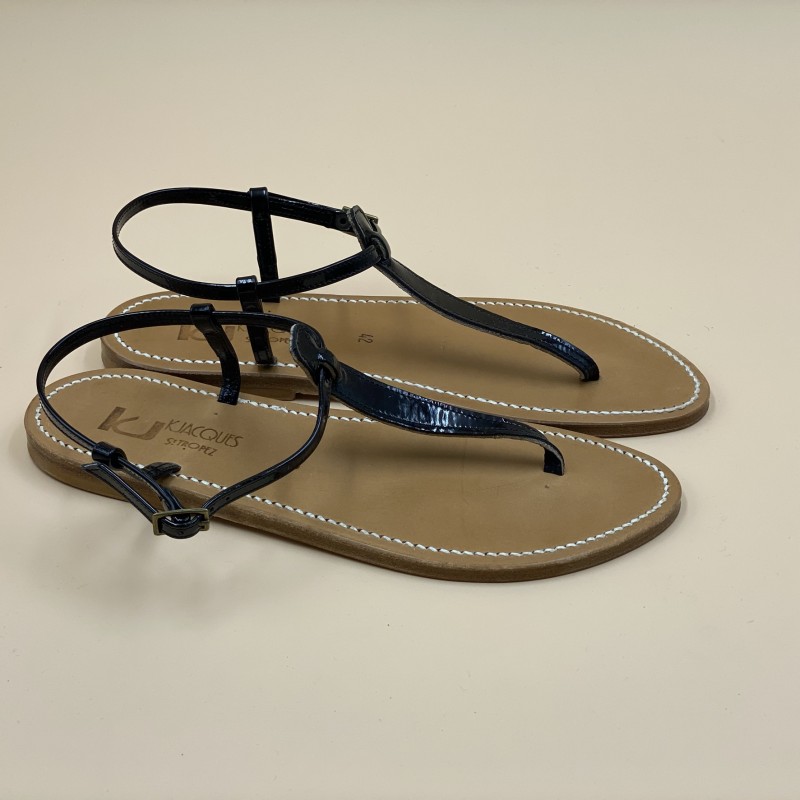 K.Jacques flat sandals, PICON Model, patent Black Leather. Size 42.