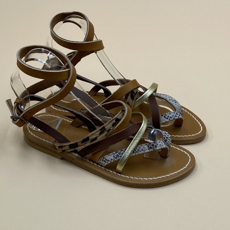 K.Jacques flat sandals, ISHTAR Model, Combi Pul Brown Leather. Size 35
