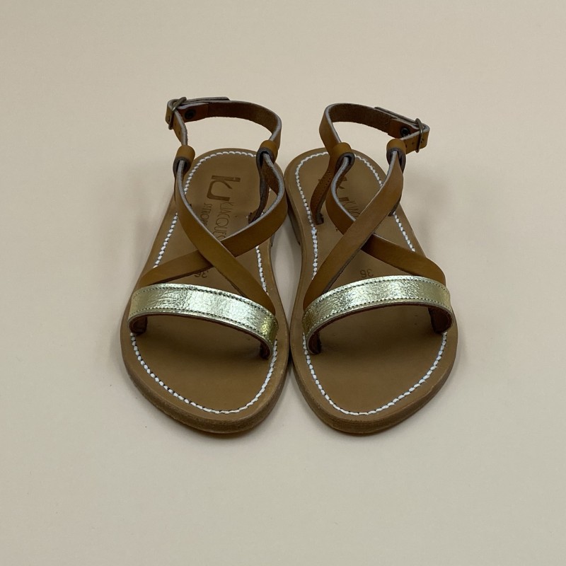 K.Jacques flat sandals, FLAVIA Model, Nolds gold Pul Natural Leather. Size 36