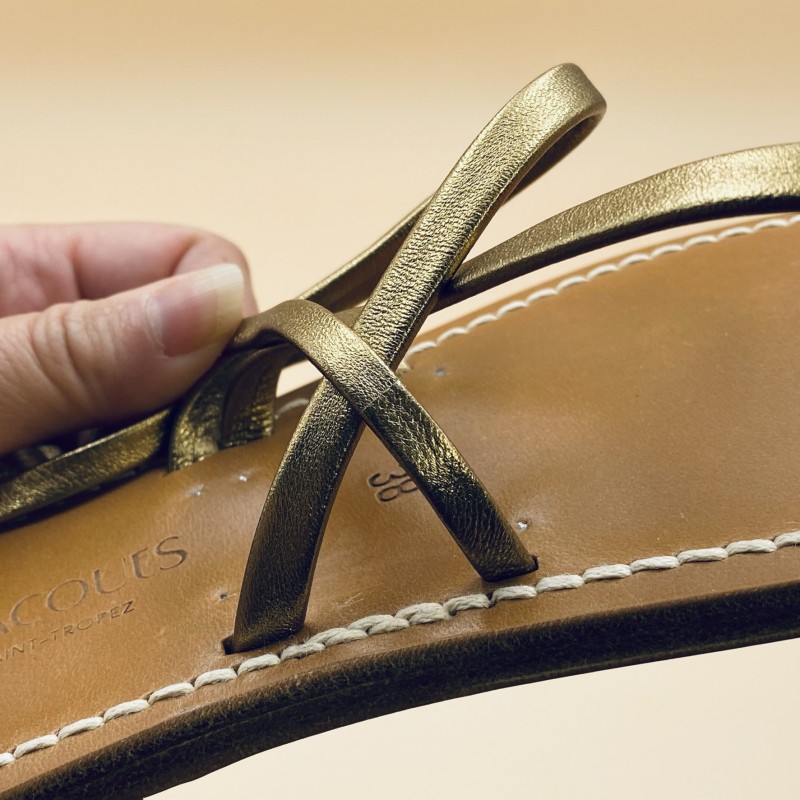 K.Jacques tropezian style sandals are hand made in France at Saint-Tropez. Our sandal’s soles are made in thick leather and the heel is made of natural hevea rubber.
