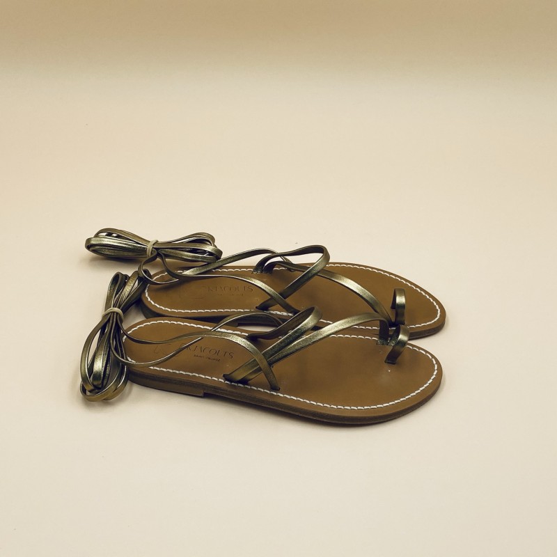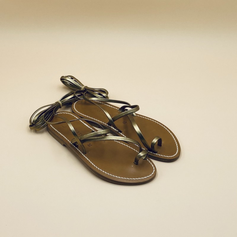 K.Jacques flat sandals, ELLADA Model, Métal Laiton Leather. Size 38.