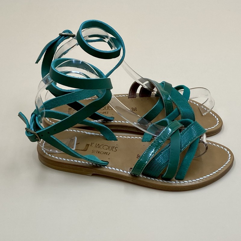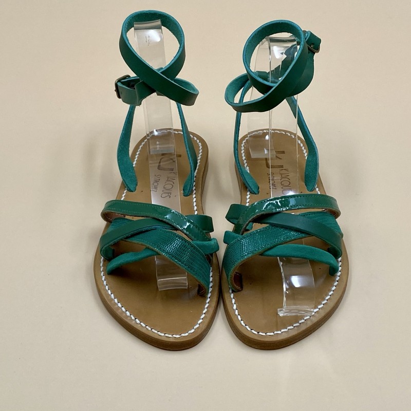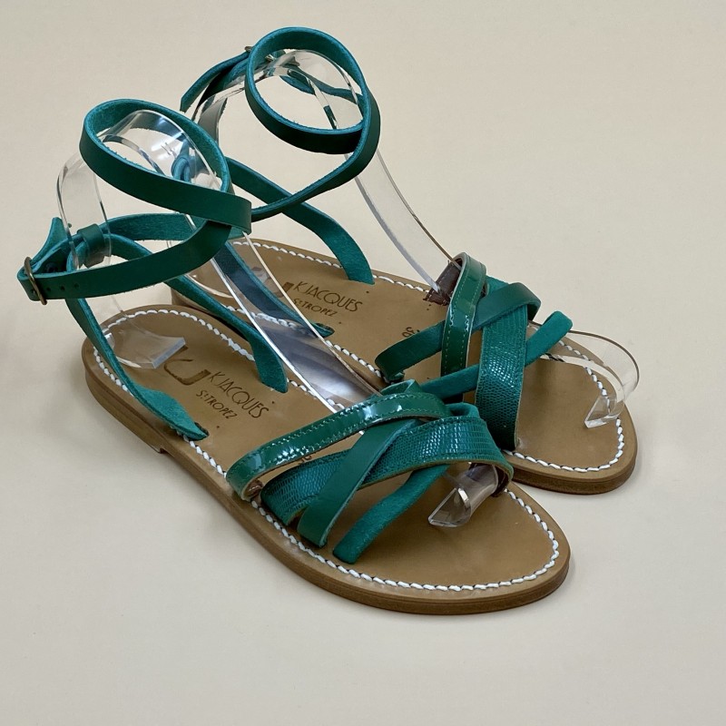 K.Jacques flat sandals, GALAPAGOS Model, Multi Green Leather. Size 36