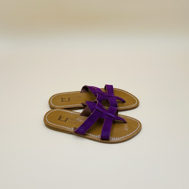 K.Jacques flat sandals, ASTREE Model, Suede Byzanthium Leather. Size 40.