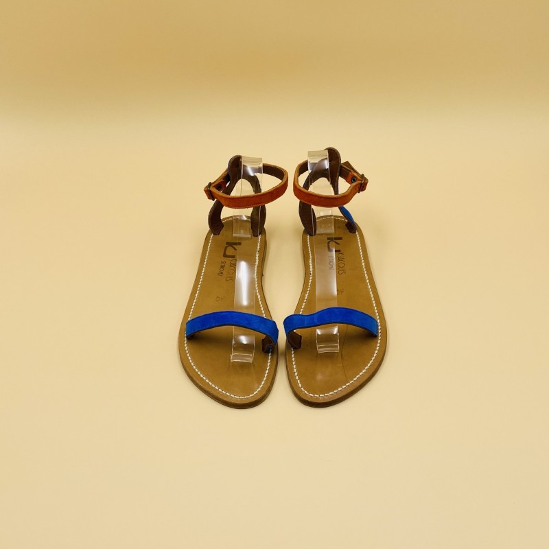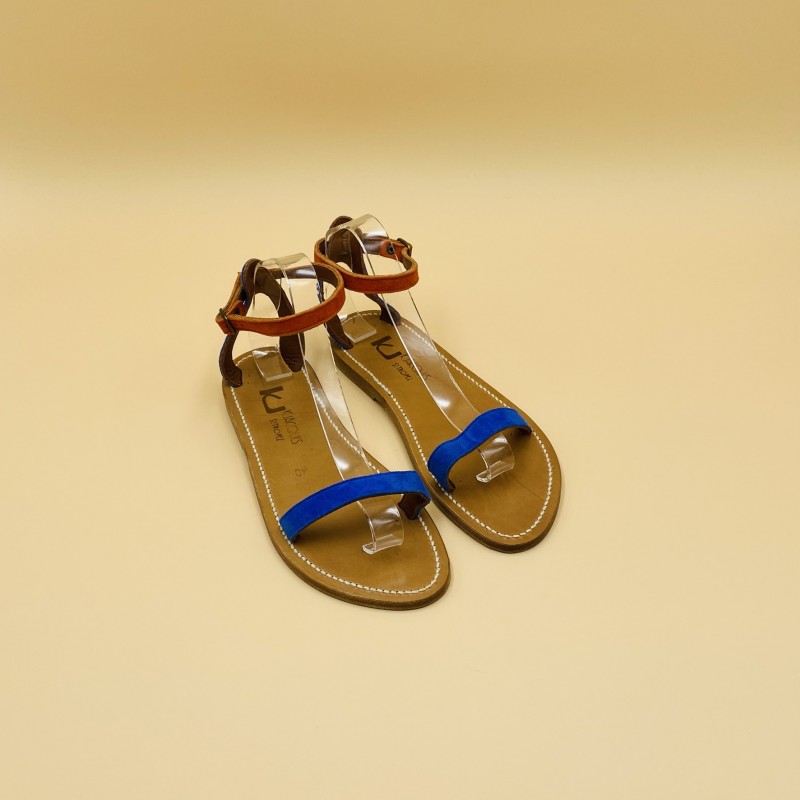 K.Jacques flat sandals, LAURA Model, Suede Naranja Suede Azulo Leather. Size 40