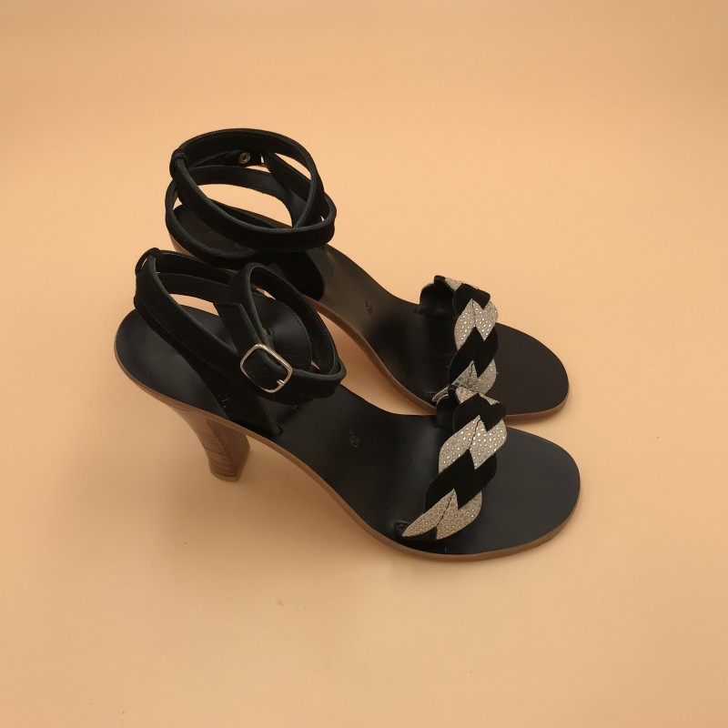 K.Jacques stacked heels sandals, GABRIELA EBENE Model, Suede Black Suede Sand Leather. Size 39
