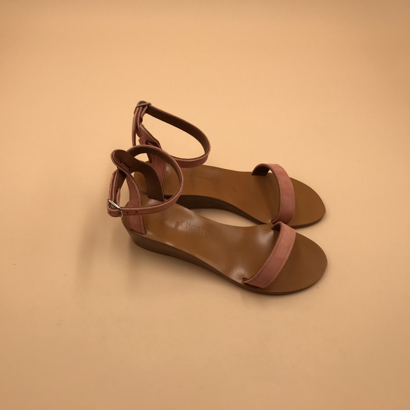 K.Jacques stacked heels sandals, MADISON Model, Suede Camelia Leather. Size 36