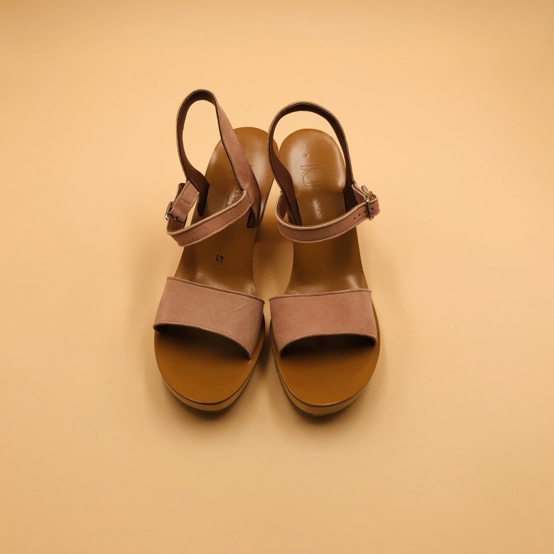 K.Jacques stacked heels sandals, ARBOUSIER Model copper sole, Suede Factor Leather. Size 41