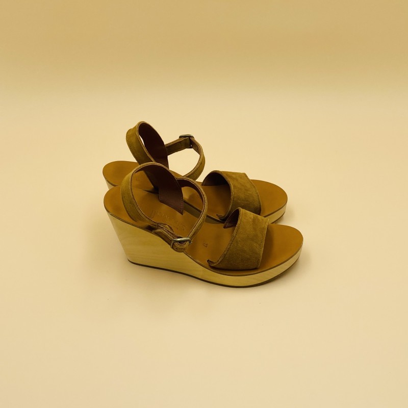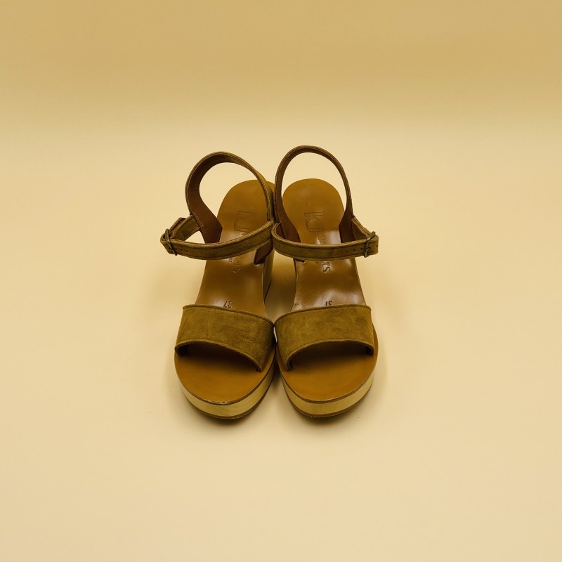 K.Jacques stacked heels sandals, ORME Model, Suede Bran Leather. Size 37.