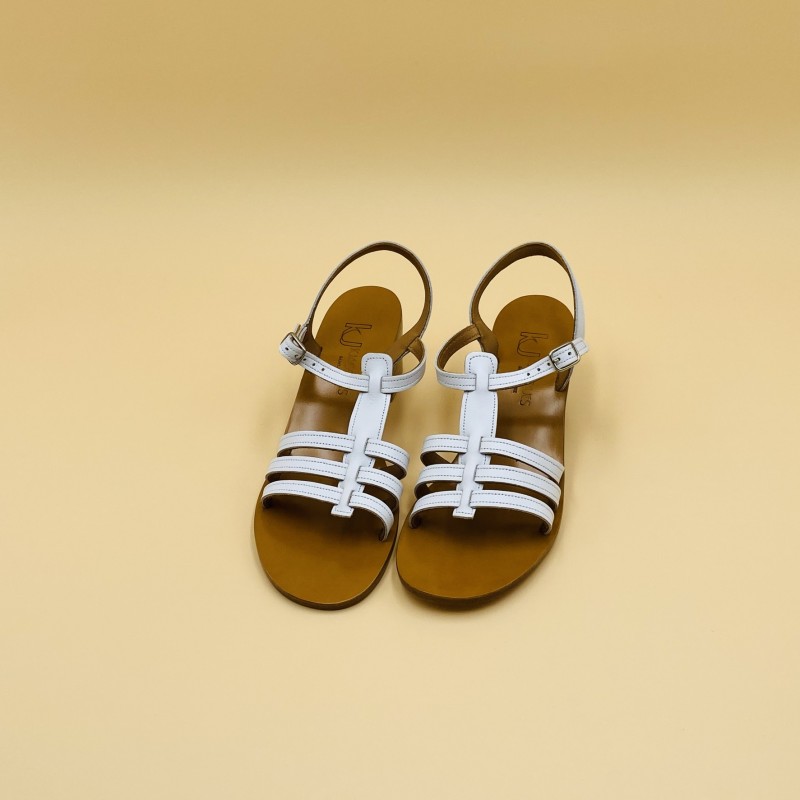 K.Jacques flat sandals, GINETTE Model, Odeon White Leather. Size 38.
