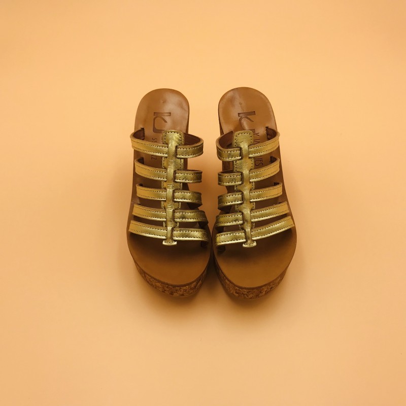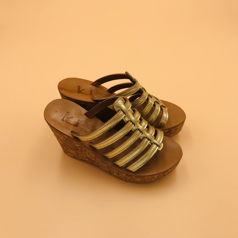 K.Jacques wedge sandals, DROSERA Model, Metallic Gold Leather. Size 35