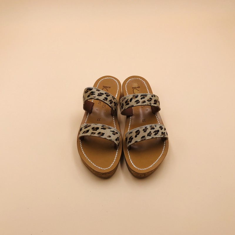 K.Jacques wedge sandals, SENANQUE Model, Printed leopard Leather. Size 37