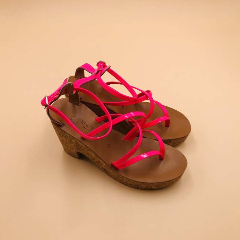 K.Jacques wedge sandals, CUNEGONDE Model, Patent Neon Pink Leather. Size 41