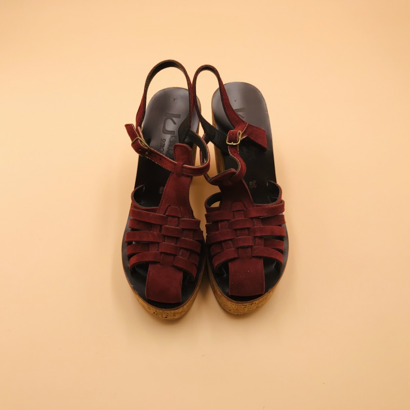 K.Jacques stacked heels sandals, AGAPO Model, Suede Campo Leather. Size 39