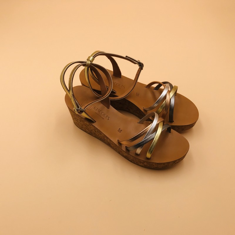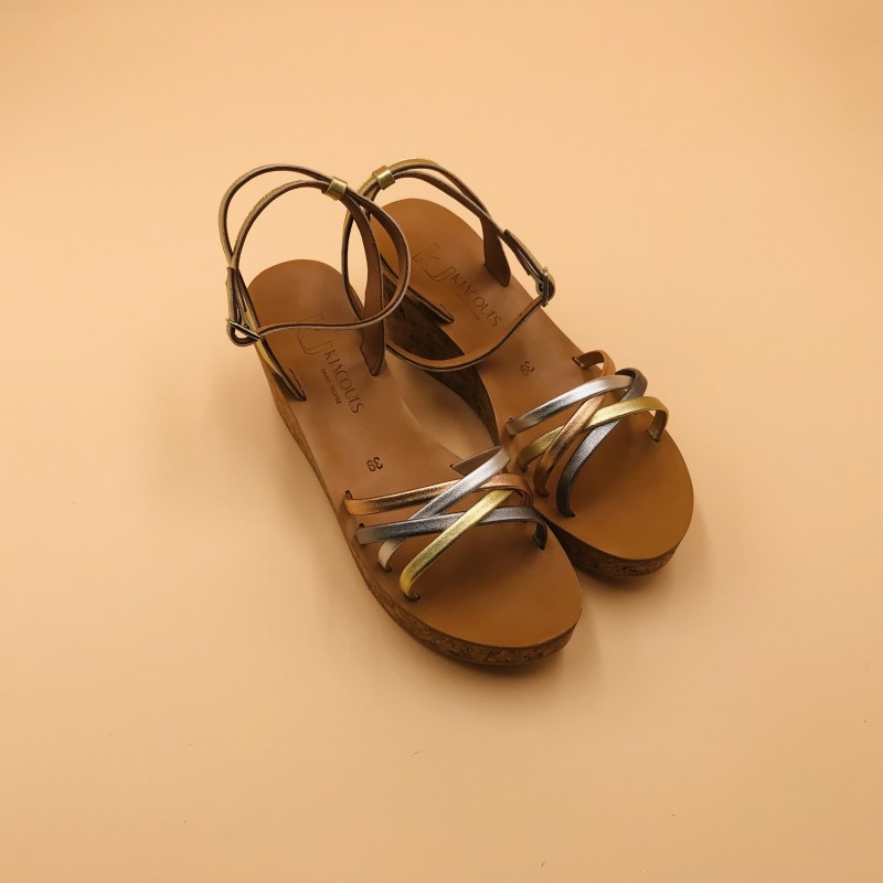 K.Jacques wedge sandals, PEGGY Model, Multi Metallic Leather. Size 39