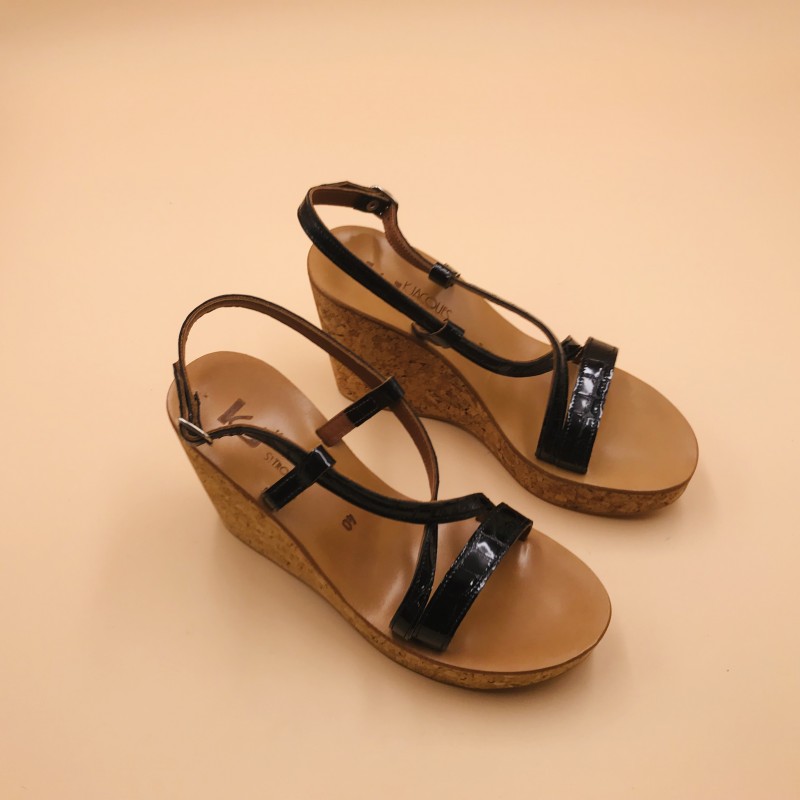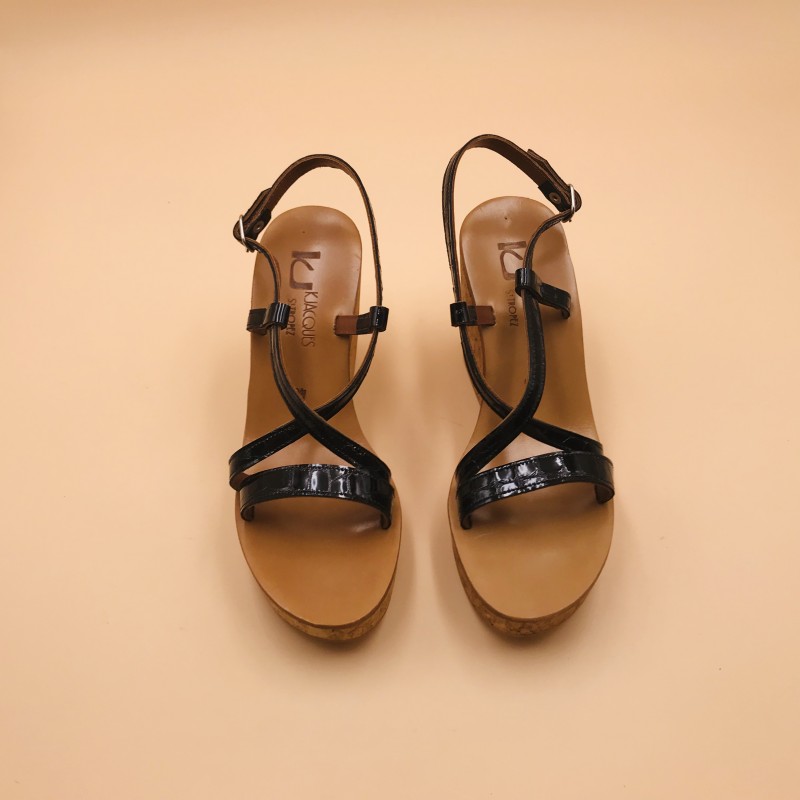 K.Jacques wedge sandals, LETIZIA Model, Boza Black Leather. Size 40.