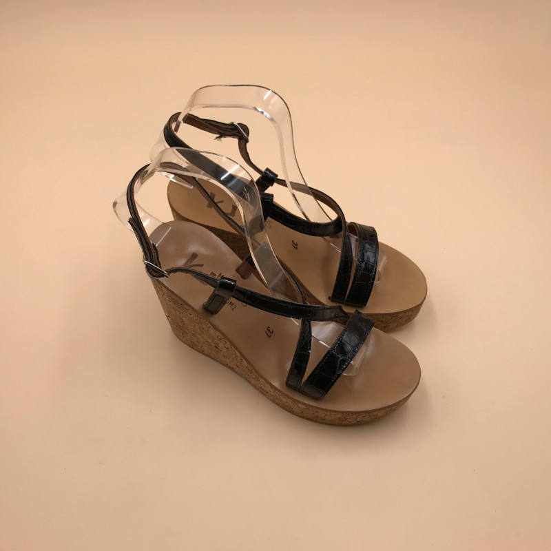 K.Jacques wedge sandals, LETIZIA Model, Boza Black Leather. Size 37.