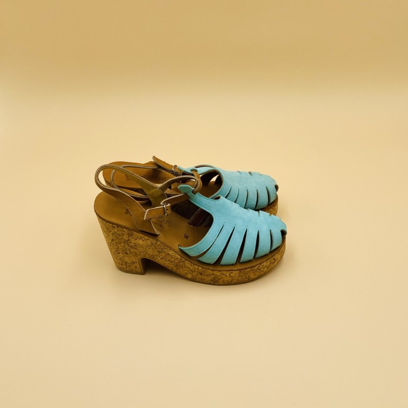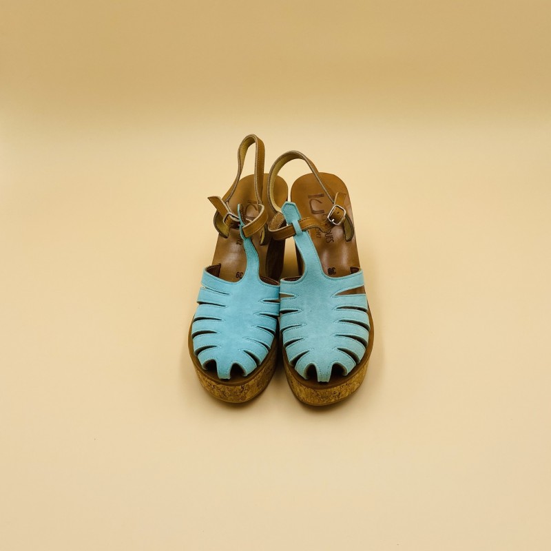 K.Jacques wedge sandals, MELISSA Model, Suede Atollo & Pul Natural Leather. Size 39