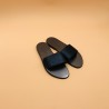 Sandales plates K.JACQUES, modèle LAURA en cuir Velours Noir et son liseré en cuir Metyl Champan, pointure 41.